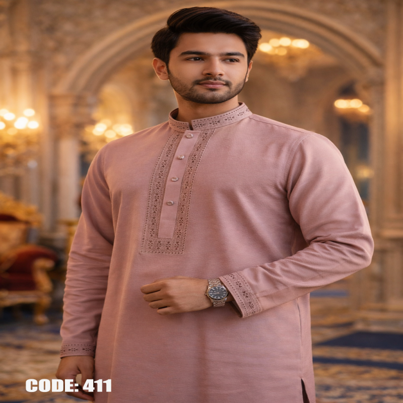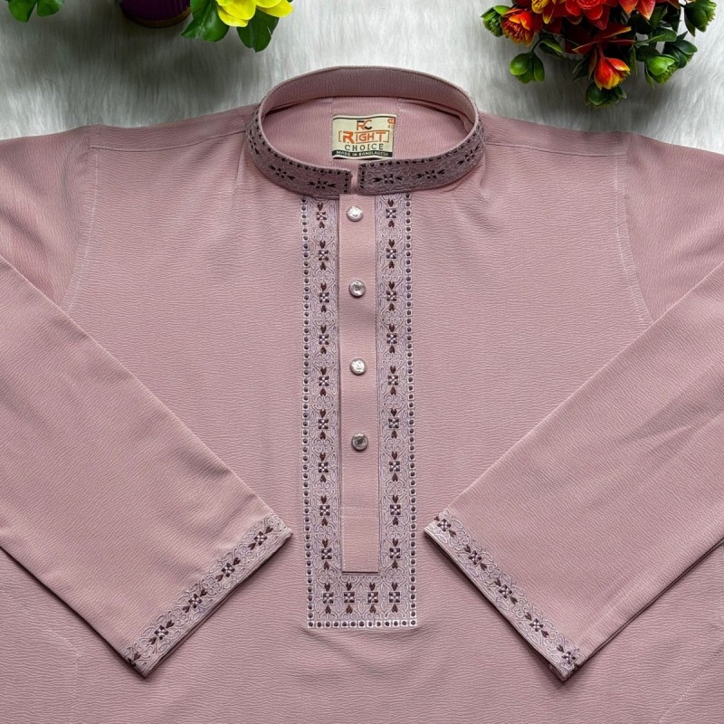Premium China Zaffran Stretch Panjabi - এলিগ্যান্ট চায়না জাফরান স্টিচ পাঞ্জাবি [411-Dusty Pink]